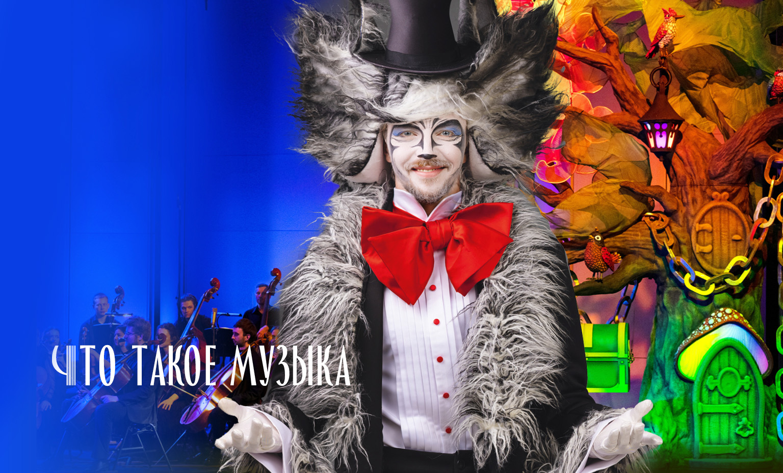 Учёный Кот и его сказочные друзья знакомятся с музыкой, им помогает большой симфонический оркестр и юные слушатели