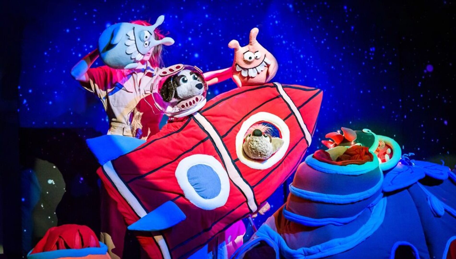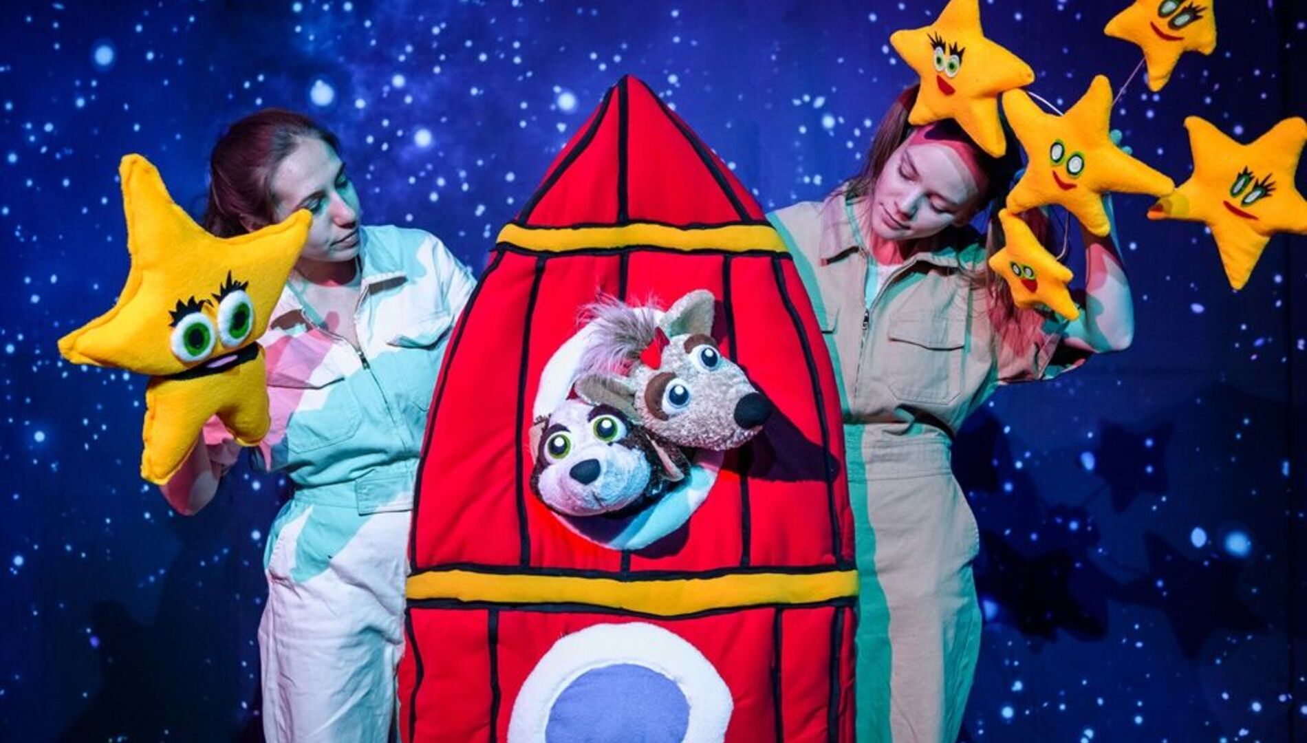 Всё это случится на спектакле «Путешествие в космос» Интерактивного Бэби театра. Вместе с собачками Белкой и Стрелкой ребята отправятся в Космос, чтобы помочь жителям далёкой планеты.