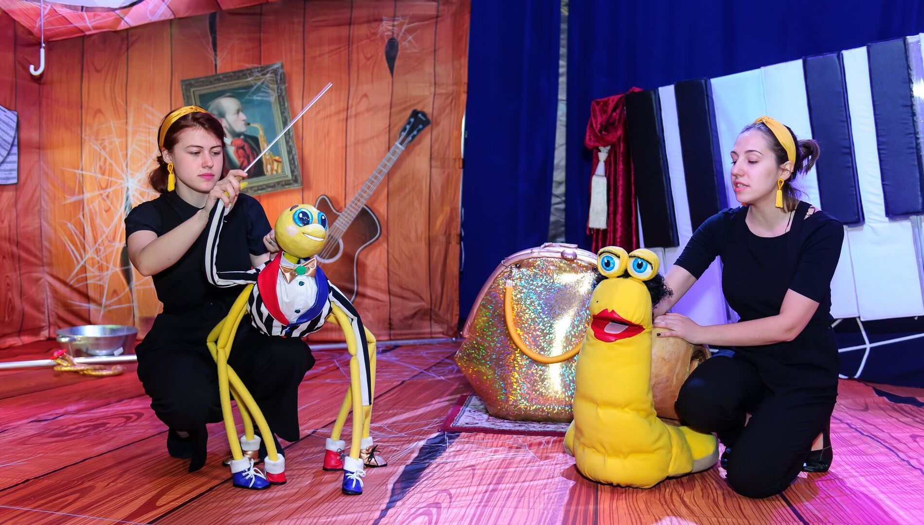 Паучок Габи живет на крыше филармонии, каждый день слушает концерты и мечтает написать свою песню — но ему мешает осенний дождик, который барабанит по крыше. Вместе с паучком маленькие зрители соберутся в оркестр, познакомятся с нотами, сыграют веселую мелодию и услышат, что шум дождя тоже может быть музыкой.